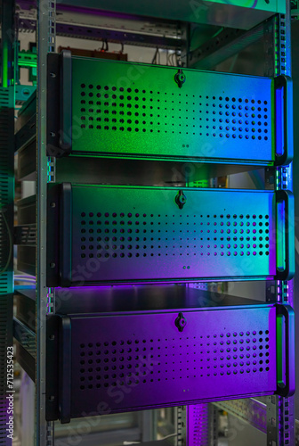Powerful supercomputer. Cloud Computing Server Room. Network of servers at a data center.