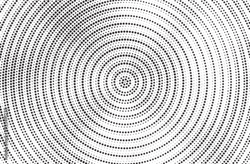 Radial halftone gradient background. Dotted concentric texture with fading effect. Black and white circle shade wallpaper. Grunge rough vector. Monochrome backdrop