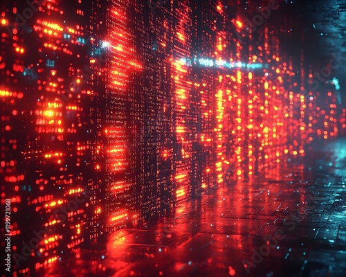 Radiant Firewall Blocking Incoming Cyber Threats of Glowing Code Arrows