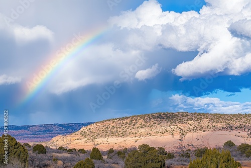 Rainbow Arcs Over Hills and Cloudy Sky