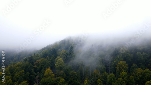 Raining in Mountains, Clouds Mystical Fog, Cloudy Rainy Day, Foggy Forest, Stormy Mist Smoke in Alpine Wood