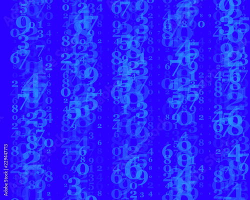 Random numbers 0 and 9. Background in a matrix style. Binary code pattern with digits on screen, falling character.