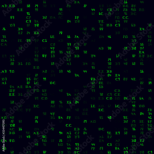 Random symbols pattern. Green sparse hexadecimal pairs seamless pattern. Trendy background. Stylish vector illustration.