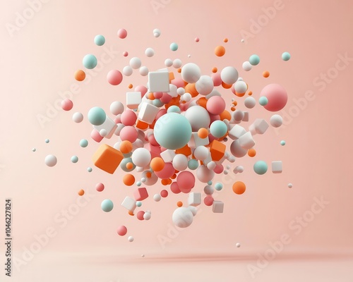 Randomly rotating cubes and spheres creating a dynamic scene, basic shapes, dynamic rotation