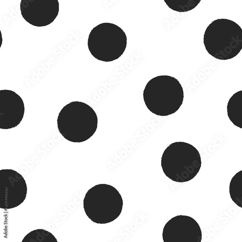 Randomly scattered black circles. Grunge, sketch, doodle. Modern seamless pattern.