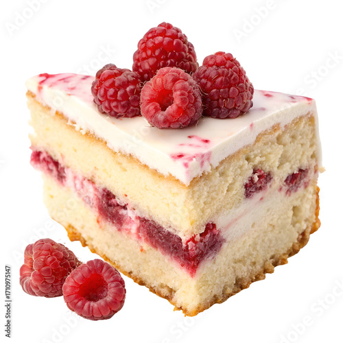Raspberry cream cake slice with fresh berries