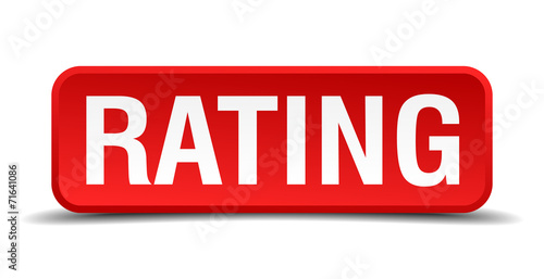 Rating red 3d square button isolated on white