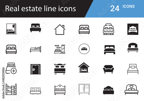 Real Estate Icons set Property, Home, Rent, Sale, Realtor, Investment, Building, Apartment, Mortgage, Lease, Contract, Location, Housing, Agent, House, Deal, Map, Buyer, Seller, Loan, Ownership, Key
