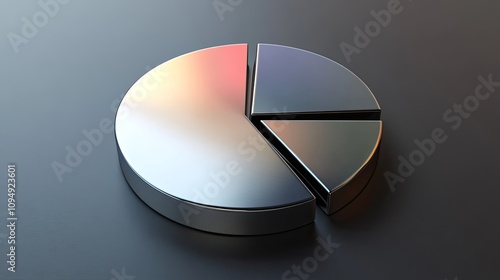 Realistic 3D pie chart with metallic sheen, [business visual], [emphasizing precision and cutting-edge technology]