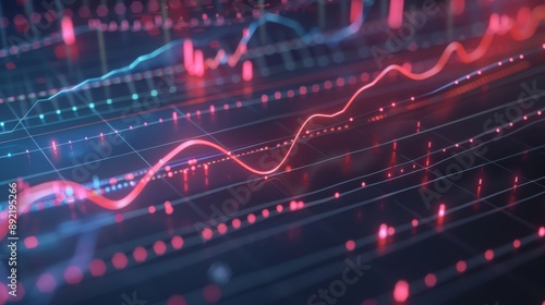 Realistic animated line chart, sleek design, dynamic effects, studio lighting