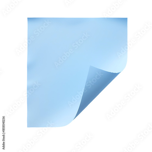 Realistic blue square sticky note with curled edge