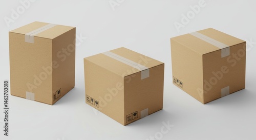 Realistic cardboard box mockup set from side, front and top view