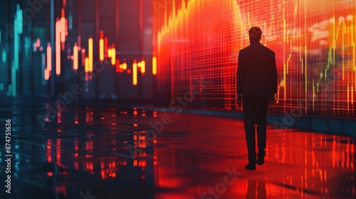 Realistic shadow walking away, falling stock graph in background