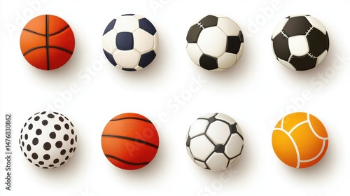 Realistic Sport Balls Collection Various Designs Soccer Basketball red fun game team blue image