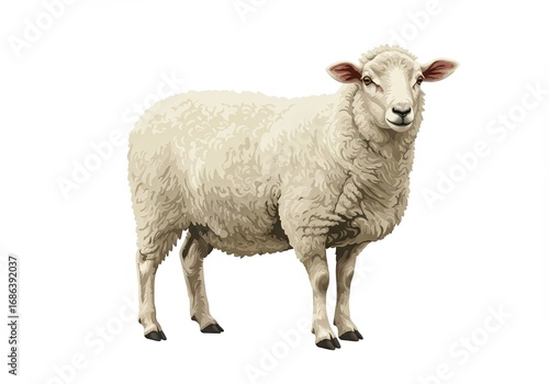 Realistic White Sheep Standing on White Background