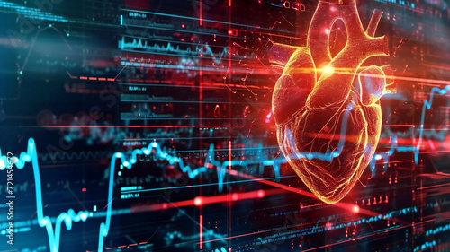 Real-time monitoring and management of heart health by AI. Heartbeat line becoming AI code. AI technology for cardiac care
