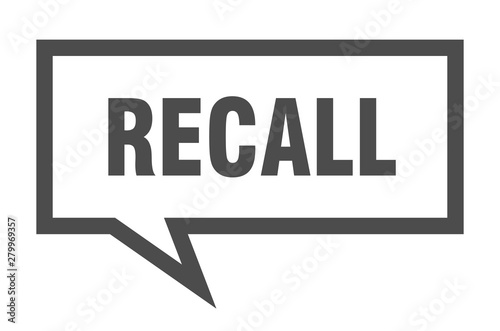 recall sign. recall square speech bubble. recall