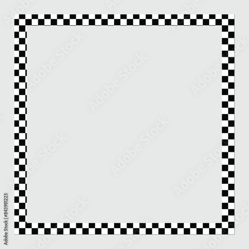 Rectangle frame with checkered print on borders. Rectangular vignette with checkerboard, race flag or chess game pattern isolated on white background.