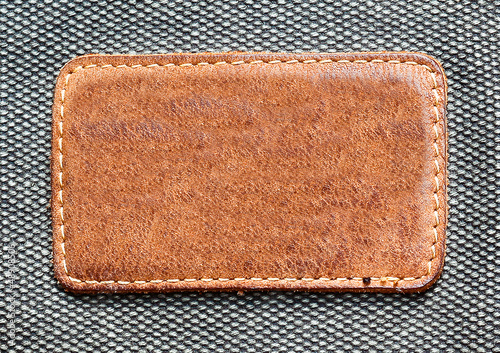 Rectangular leather label isolated over denim texture
