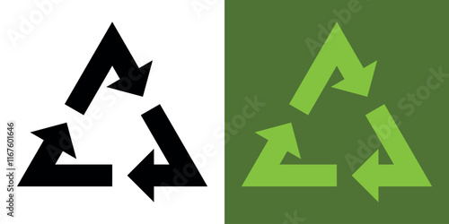 Recycling. Recycle icons. 3 green arrows. Reuse, green environment. Recycling Symbol. Green and black icons for packaging, recycling. Ecology.