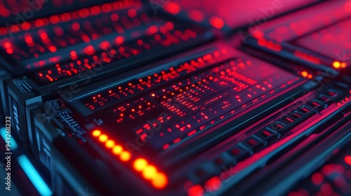 Red & Blue Server Rack Abstract Technology Background