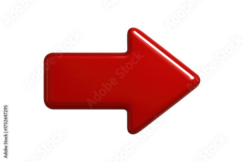 Red 3d glossy arrow icon representing direction, progress, and next steps. Isolated on a transparent alpha background