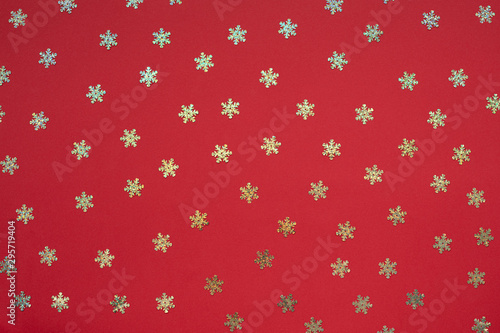 Red abstract christmas background with holographic glitter snowflake