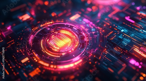 Red and Blue Futuristic Interface with Circular Interface