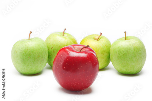 red and green apples, isolated