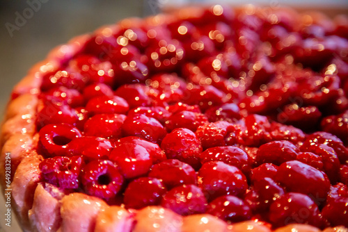 Red and shiny raspberry cake