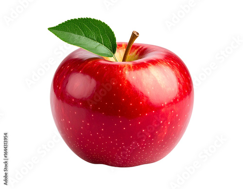 Red apple with leaf isolated on transparent background