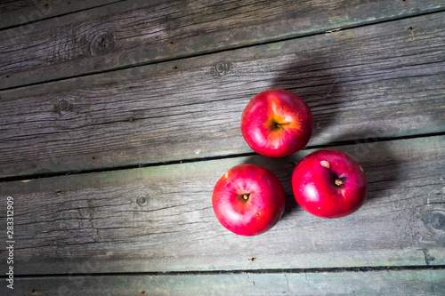 Red apples on a wooden background