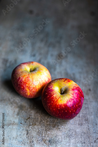 red apples on wooden table