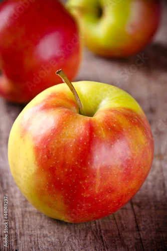 Red apples on wooden table