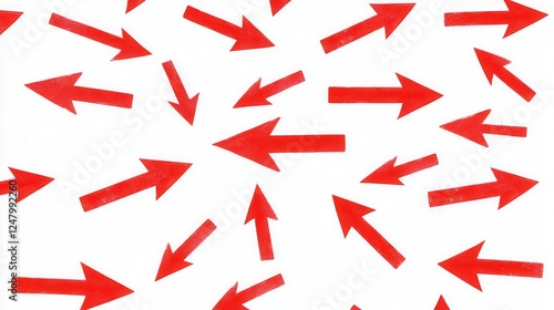 Red arrows diverging on a white backdrop, emphasizing direction and movement, ideal for design projects and visual communication