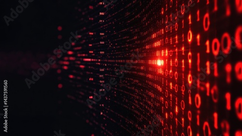Red Binary Code Stream: Abstract Digital Data Flow