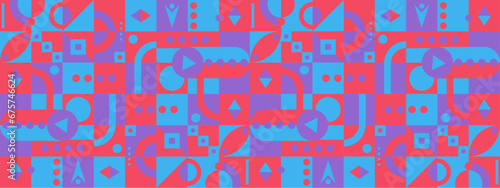 Red blue and purple violet abstract geometric mosaic banner design with simple shapes