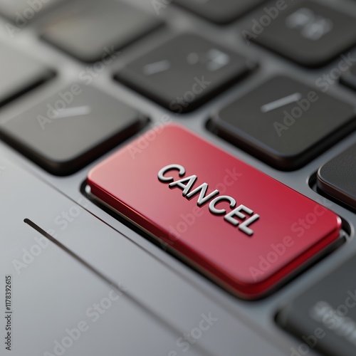 red cancel button on a black computer keyboard close-up – technology concept for stopping actions or terminating commands