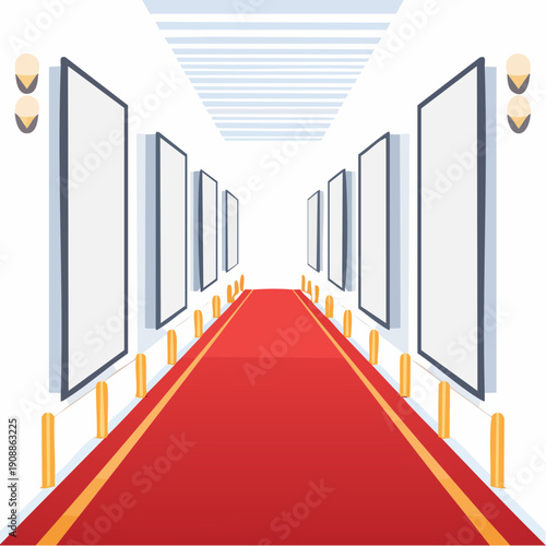 Red Carpet Corridor with Multiple Poster Frames