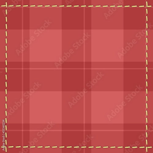 Red checkered background with stitches