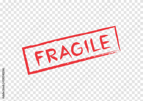 red clearly fragile word in red square frame isolated on transparency background
