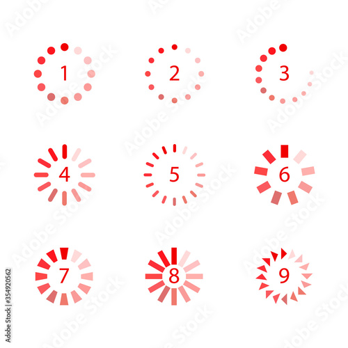 Red color Load Indicators Set. Vector process icon set. wait loading icon colour set