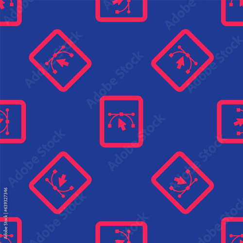 Red Computer display with vector design program icon isolated on isolated seamless pattern on blue background. Photo editor software with user interface. Vector