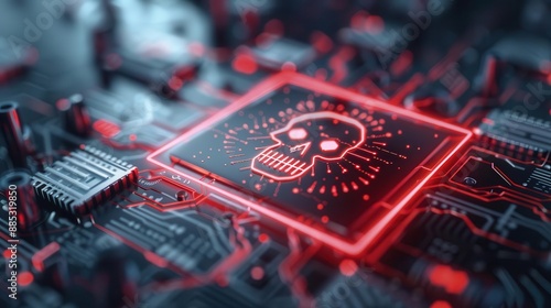 Red danger alert, digital error, virus warning sign, futuristic tech