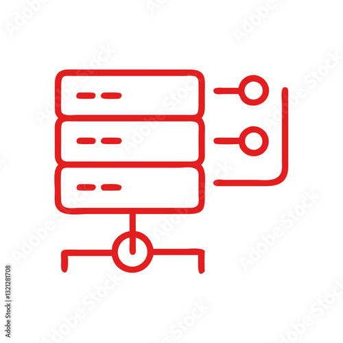 Red database diagram with data flow for IT tutorials, network systems, database design, and data processing concepts