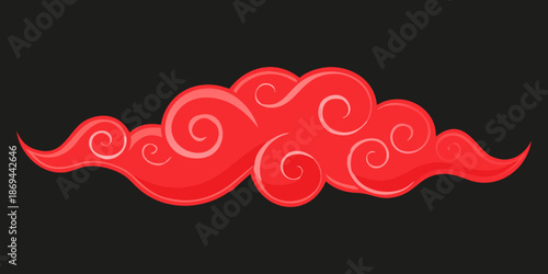 Red Decorative Asian Cloud Illustration in Flat Vector Style.