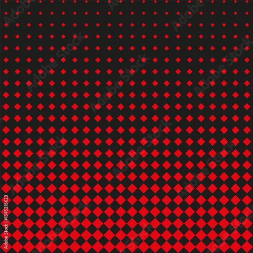 Red diamond pattern. Abstract pixel background. Black contrast gradient. Vector geometric shape.