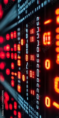 Red Digital Binary Data Stream on Dark Background, Programming Code on Computer Screen