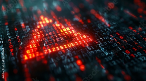 Red Digital Warning Symbol on Binary Code