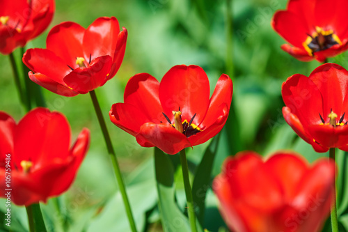 red flower tulip closeup in field